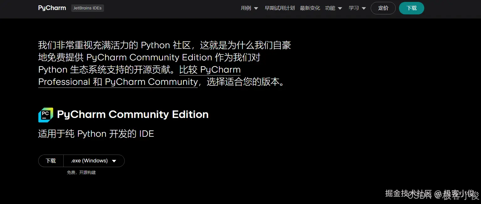 没有安装的朋友可以去jetbrains官网免费去下载一个PyCharm社区版