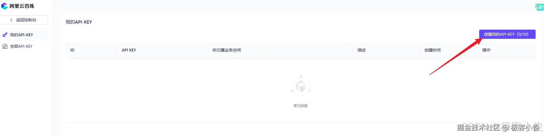 然后点击创建我的API-KEY