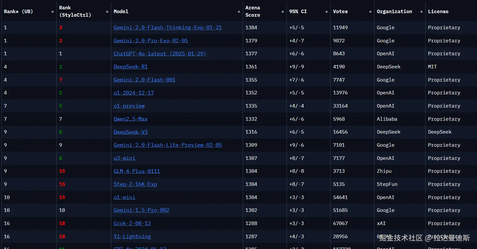 Chatbot arena的排行榜