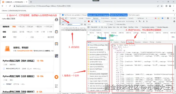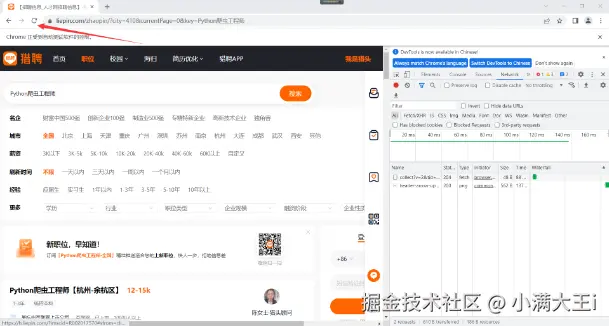下面这段代码主要用于使用Selenium WebDriver启动Chrome浏览器,访问指定的招聘网站页面,并获取该页面加载过程中的性能日志(特别是网络请求日志)。通过配置DesiredCapabilities和ChromeOptions,可以定制浏览器的启动行为和日志记录偏好。最后,通过解析性能日志的JSON数据,可以获取到详细的网络请求信息: