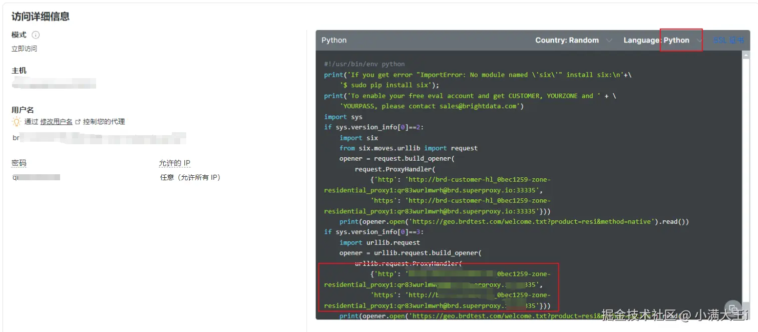9、参考代码语言选择Python,然后找到你的代理IP链接: