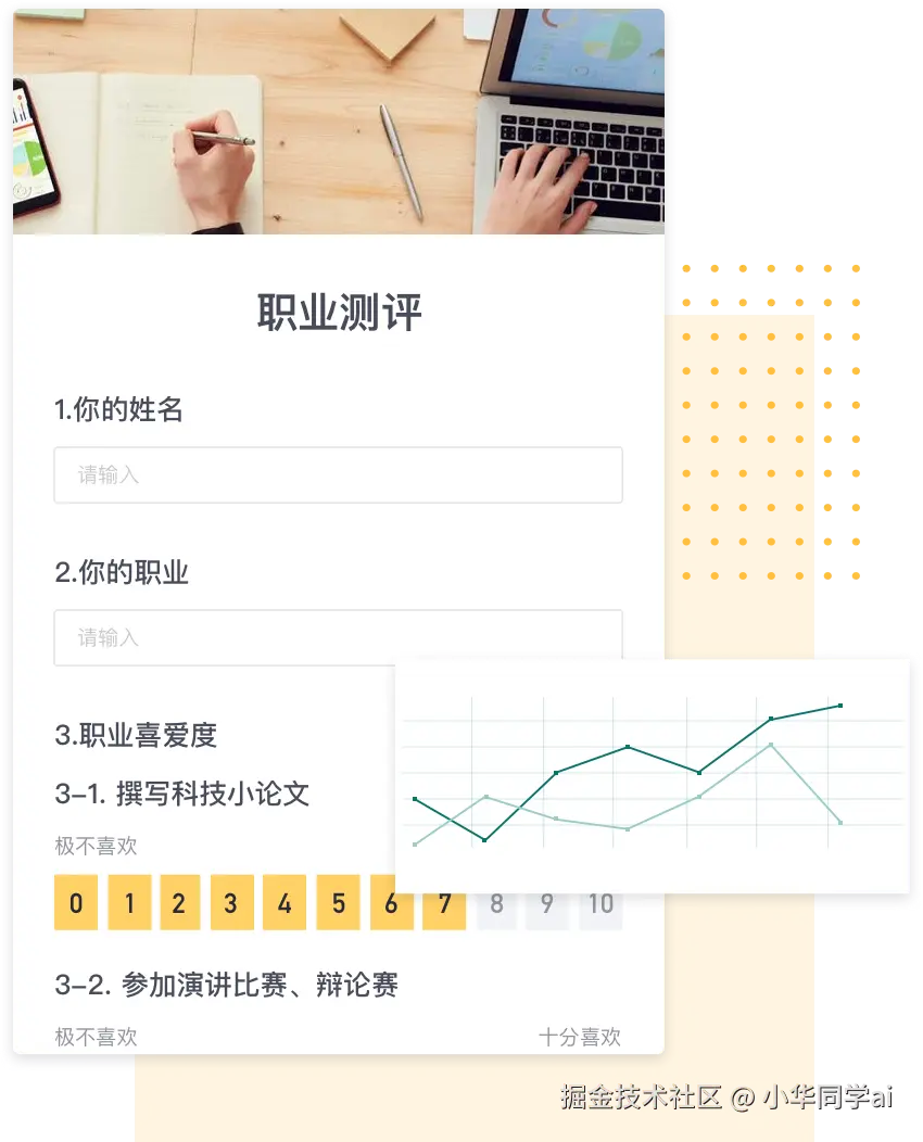 - 多类型数据采集 :支持文本输入、数据选择、评分、投票、文件上传等多种方式,轻松创建调研表单,满足不同场景下的数据收集需求。