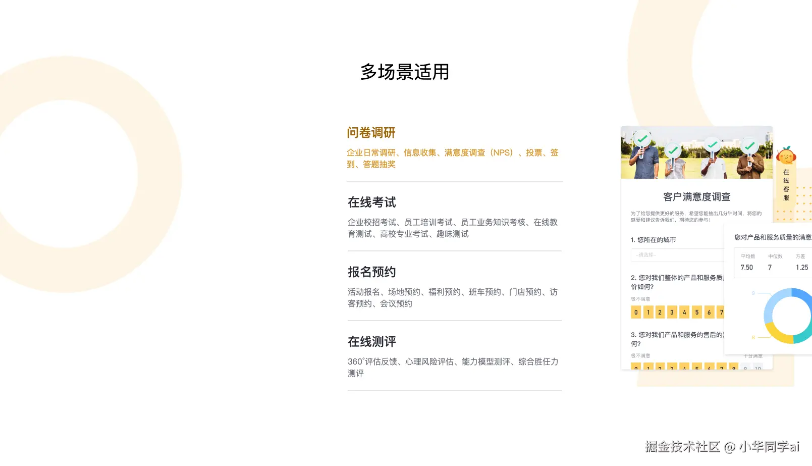 XJ-Survey 是由滴滴开源的一款轻量、安全的调研系统,它为个人和企业提供了一站式产品级解决方案。无论是构建各类问卷、考试、测评还是复杂表单,XJ-Survey 都能快速满足各种线上调研场景的需求。