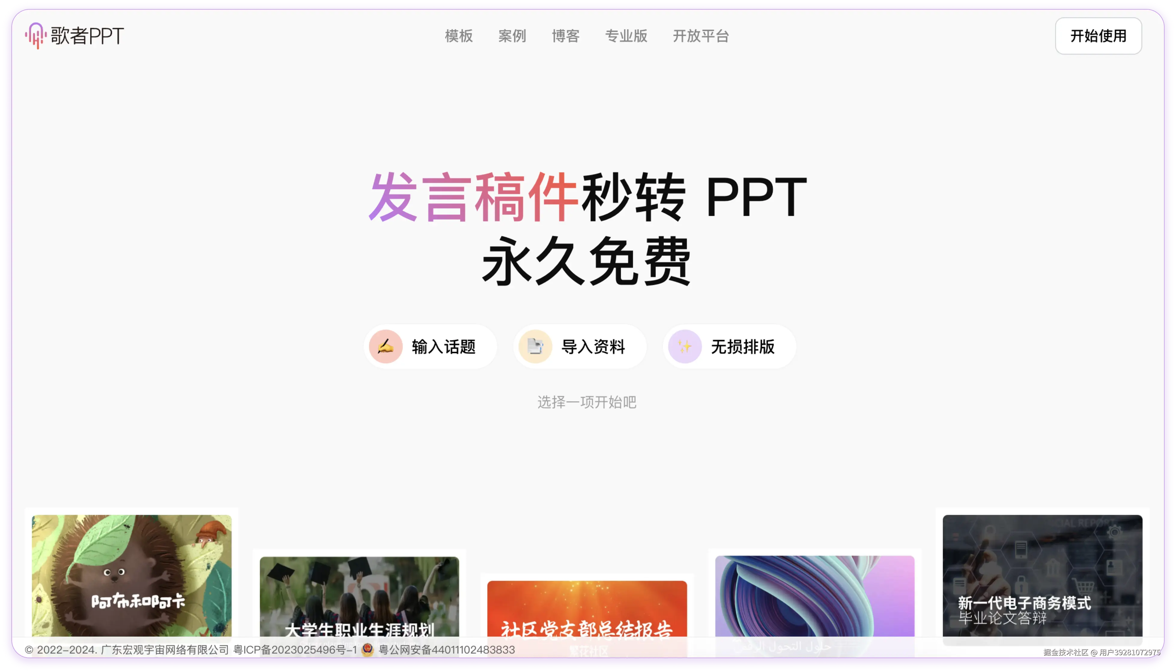 2. 打开歌者PPT(gezhe.com),使用「资料转 PPT」或「无损排版」功能,将复制的内容粘贴进去