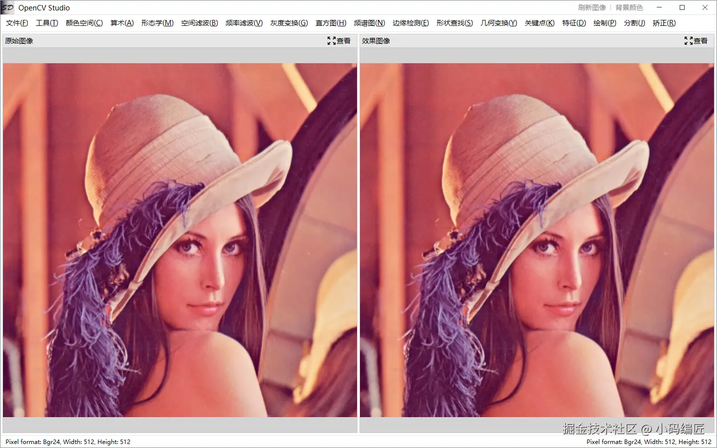 颜色空间:支持RGB、HSV、Lab等颜色空间的转换。