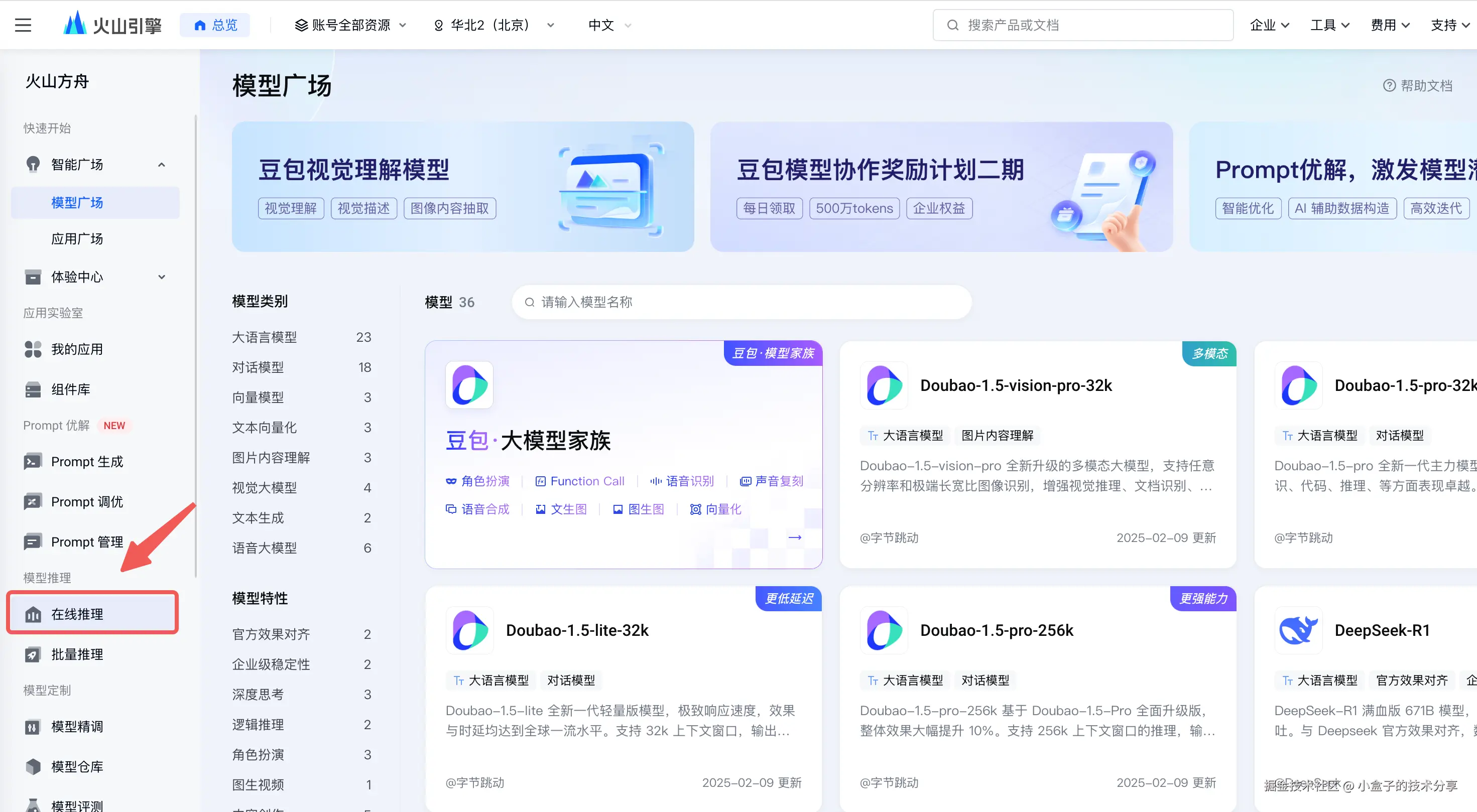 来到火山引擎后,前面的注册、登录、实名认证过程我就不多说了。这一步重要的是找到入口,好像也有人像我一样 “在门口转悠半天,不知道从哪里进入”。