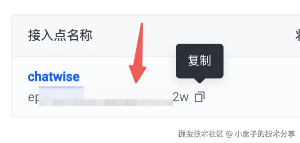 这个 ID 在上图的列表页,接入点名称的下方,人家还贴心的做了复制功能: