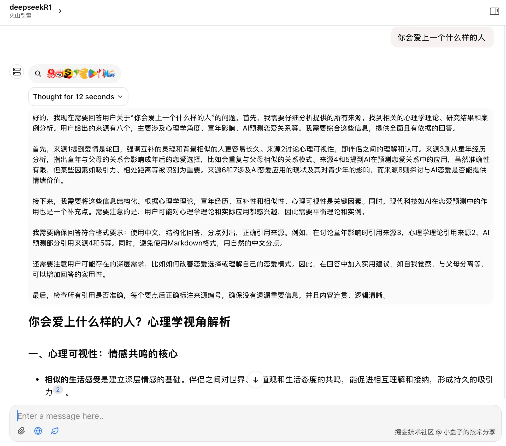 其他的,提供类似这种产品化服务的还有几个,比如 :“秘塔ai” 、“知乎直达” 、“askmanyai” 、“腾讯元宝” 。这些产品都接入了 DeepSeek R1 模型,和自家的产品做了集成。