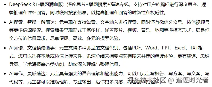 腾讯元宝是依托于腾讯混元、DeepSeek等大模型,基于跨知识领域和自然语言理解能力的大模型AI产品。元宝期望通过AI能力帮助用户在逻辑推理、职场办公、知识学习、趣味创作、生活百科等多个领域提高效率和生活辅助,感受 AI 带来的全新体验。同时,通过联网搜索信息,腾讯元宝能够确保推理和回答的时新性和权威性。
