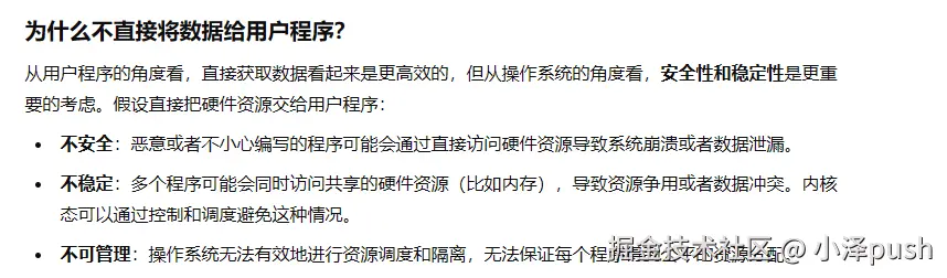 发现一个问题没有?为什么要进行用户态到内核态的转换呢?真的是,就不能直接读到数据后就给到用户程序吗?