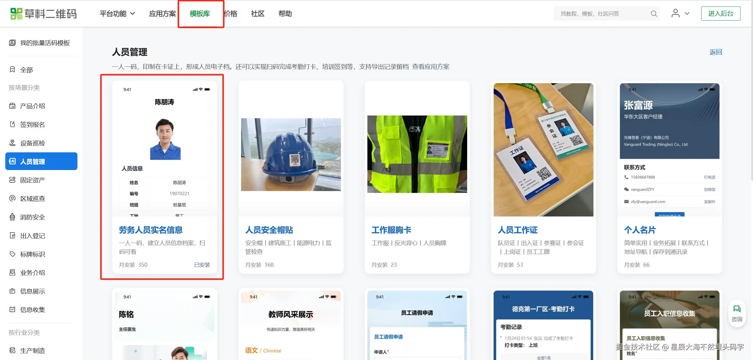 首先,在电脑上访问草料二维码官网,注册并登录账号。进入草料二维码的模板库,选择劳务人员实名信息的模板,不用从头开始创建,免费就能使用。