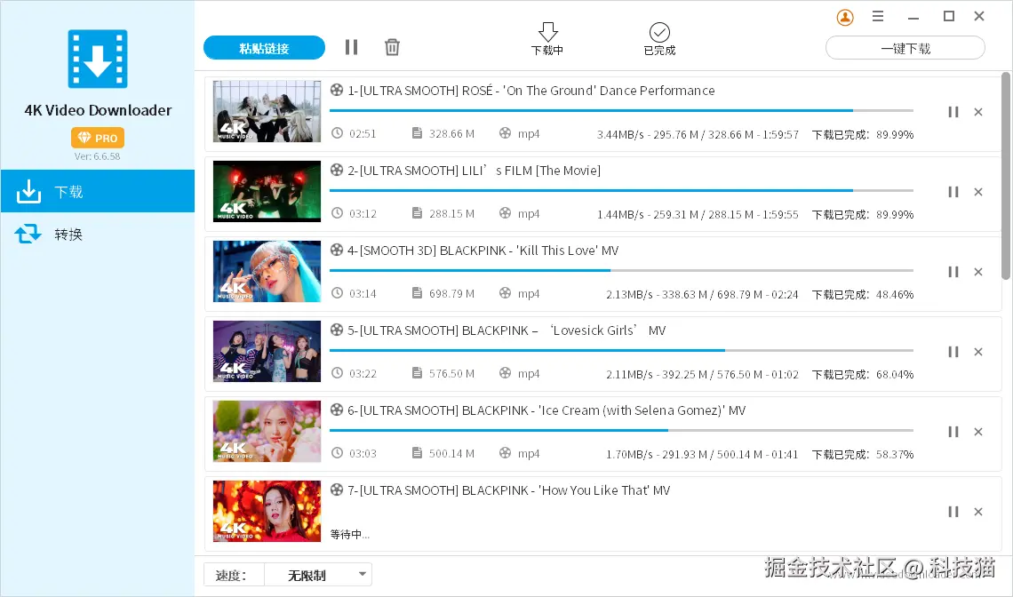 短视频创作需要高清、无水印的视频素材,但很多网站不支持直接下载,或者下载后质量受损。4K Video Downloader 支持4K、8K、1080p等多种分辨率的视频下载,保证素材质量。
