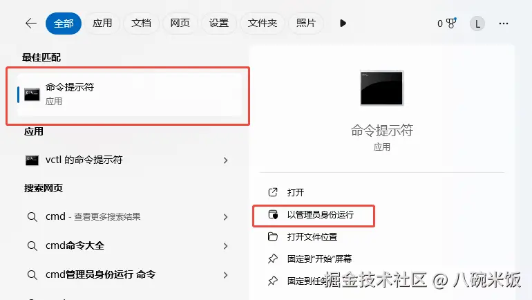 Step1:电脑上直接搜索cmd打开命令提示符,需要以管理员身份运行