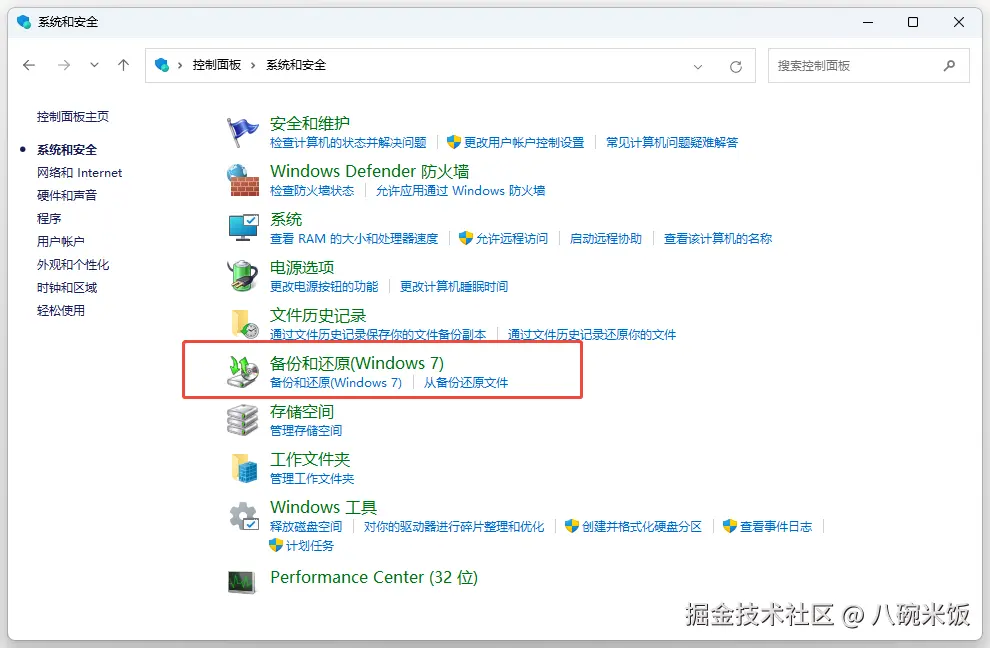 Step3、点击“备份和还原”,选择“恢复我的文件”