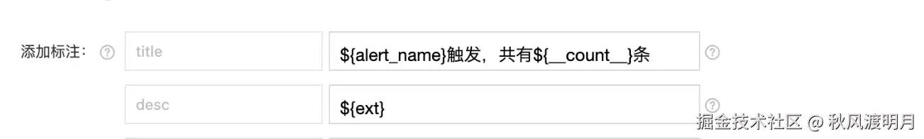 - desc是告警固定的非标识性属性,可以在通知内容模板中以 ${annotations.desc} 被引用。