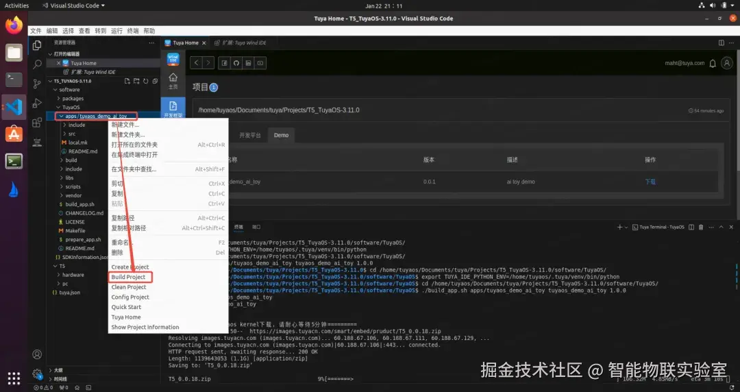 目前 "Wukong" AI 开发框架 1.0 版本已经发布,开发者基于该框架开发的 AI 玩具已经实现量产,并受到了品牌消费者的广泛认可。开发者如果想要开发自己的 AI 硬件产品,通过 Tuya Wind IDE 即可下载 "Wukong" AI 开发框架,接下来一起看下具体操作步骤。