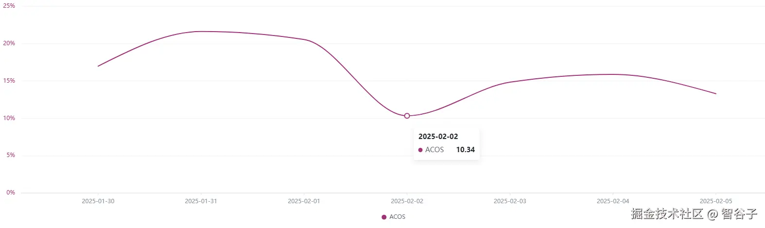 - 最近一周的ACOS折线图显示,DeepBI表现稳定且优异。