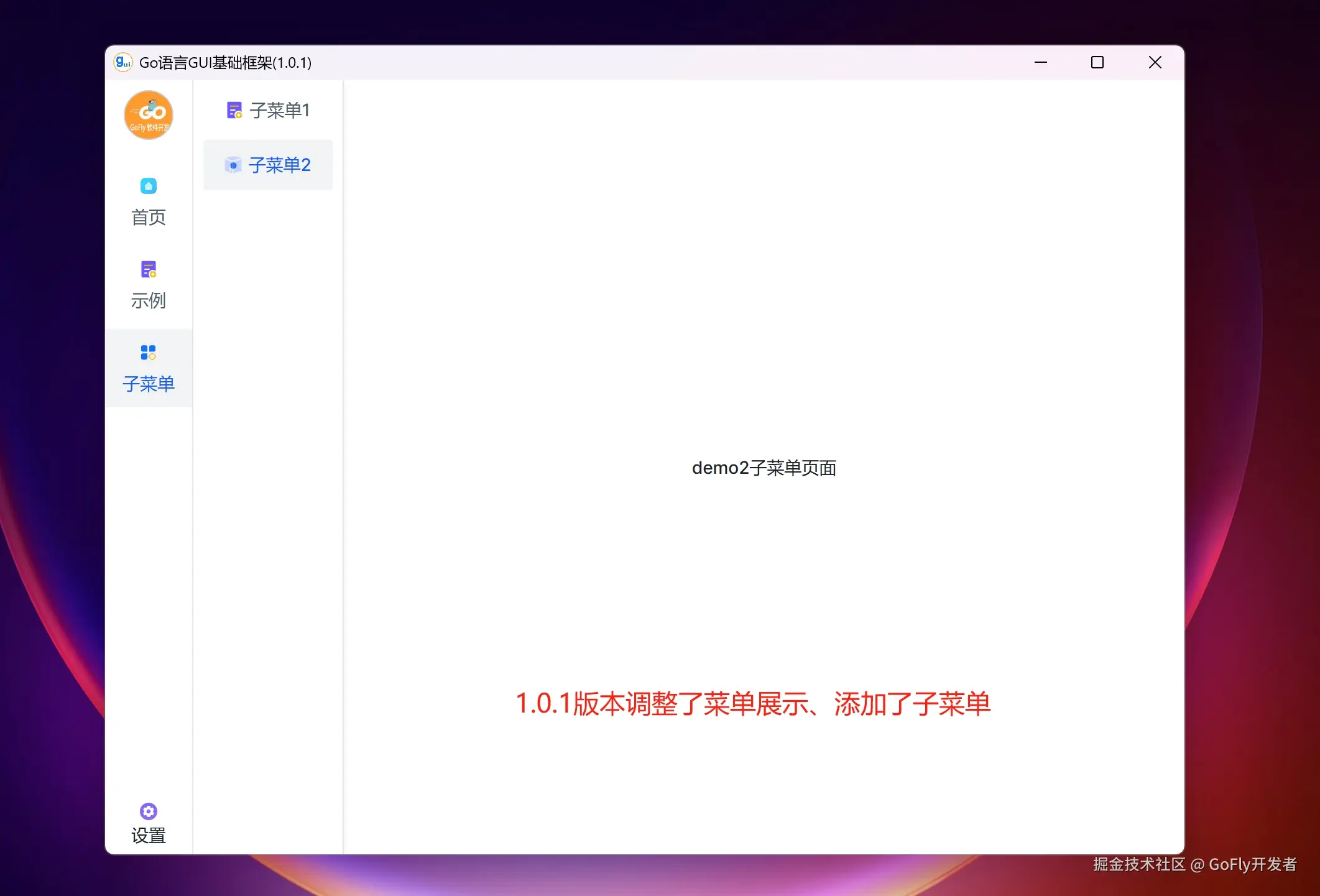 在1.0.1版本调整主菜单样式、添加子菜单,如下图: