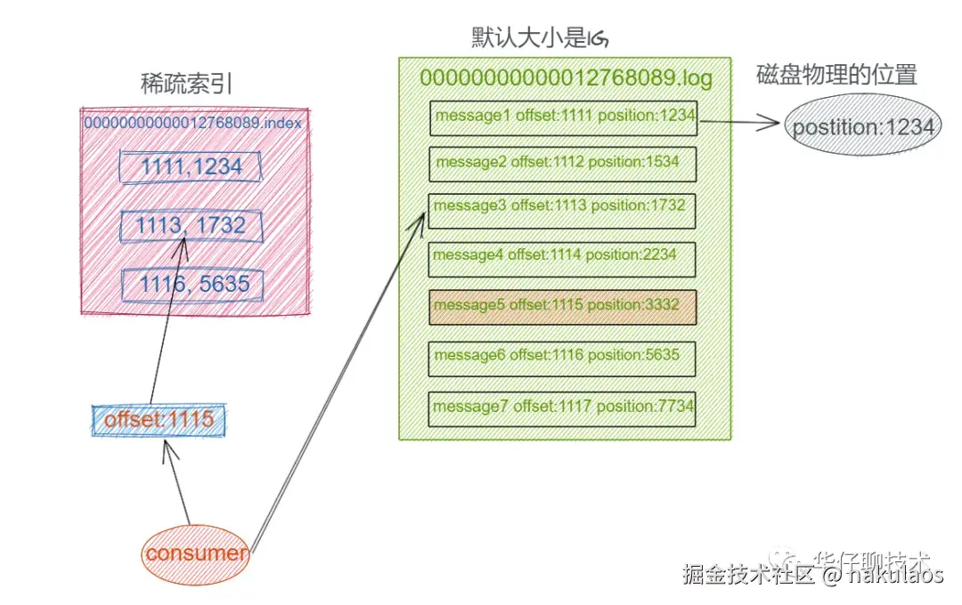 每个.log都是一个绝对索引,从下图可以看出来,Kafka 的数据是基于「主题 + 分区 + 副本 + 分段 + 索引」的结构