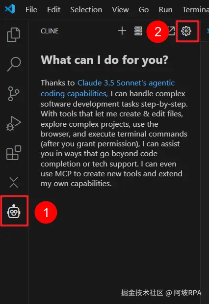 点击cline图标 --> 设置,进入cline配置界面