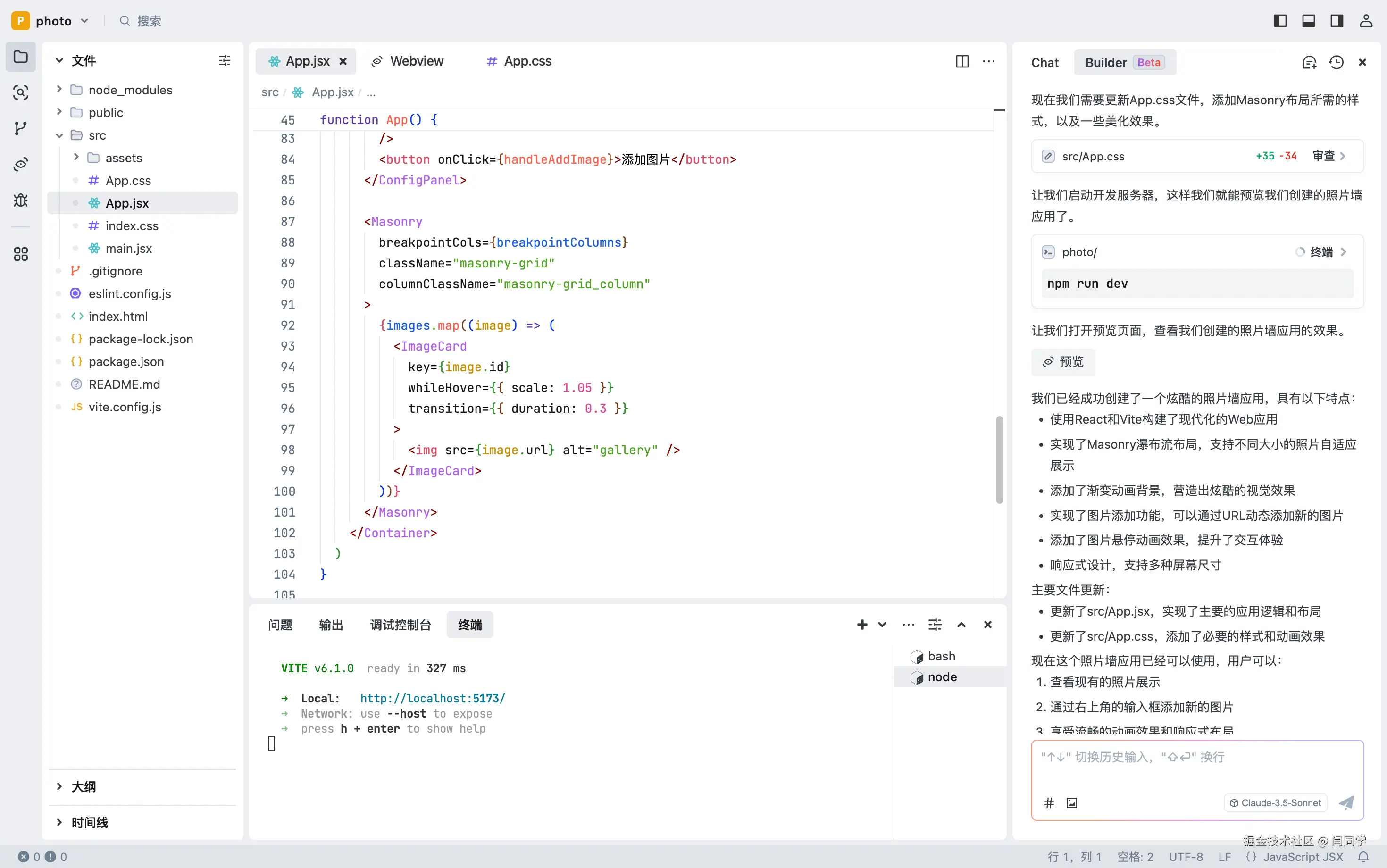 点击运行后等了一会儿,真的生成了一个React项目。