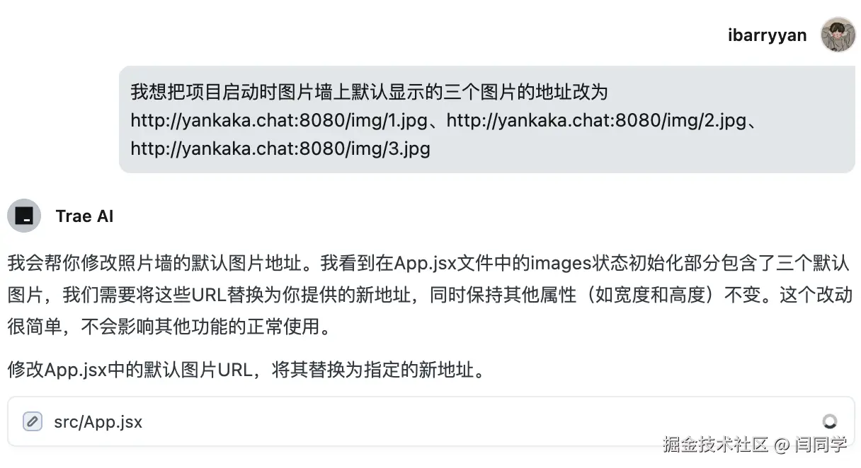 我看这都难不倒它,然后做出了更细节的指令,比如我要修改项目启动时页面上默认显示的图片。