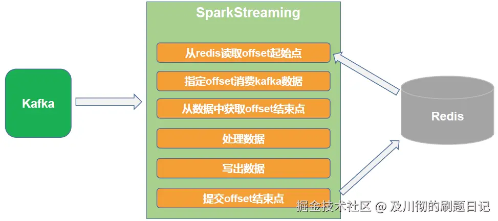 解决策略:手动的将偏移量存储到redis中,每次消费数据需要使用存储的offset进行消费,每次消费数据后,要将本次消费的offset存储到redis中。下游幂等处理用于数据去重。