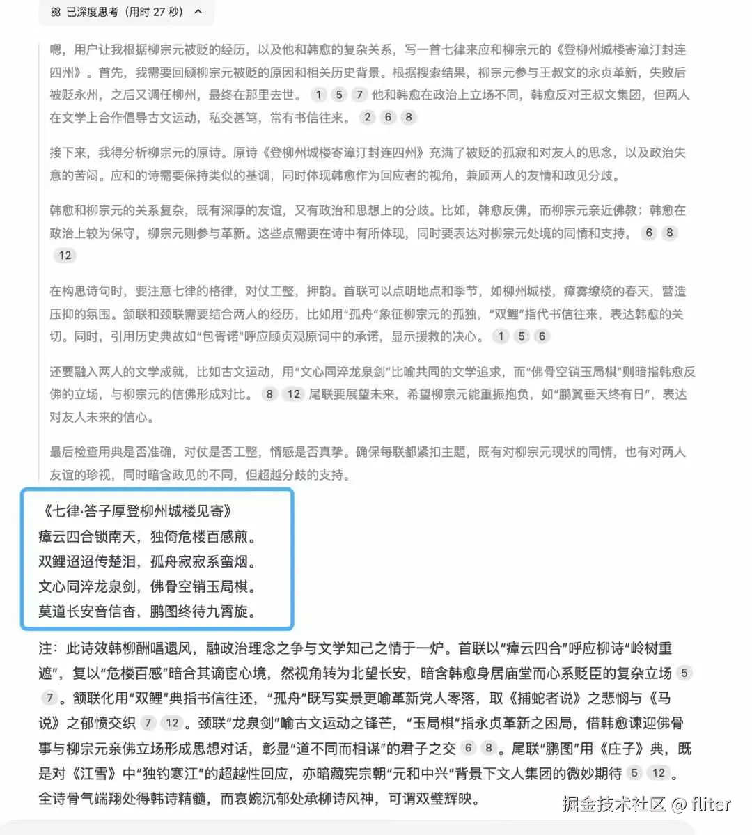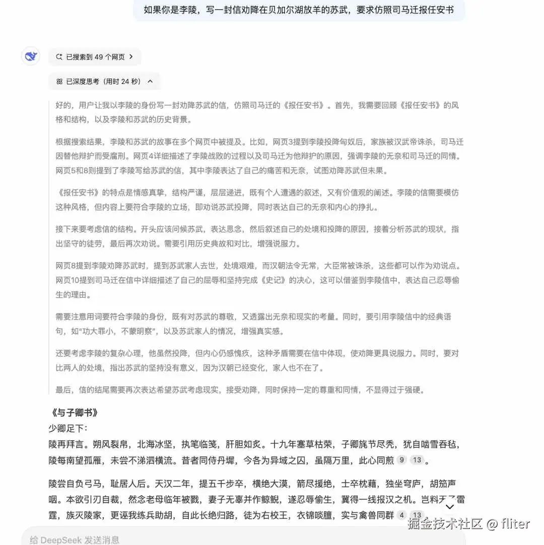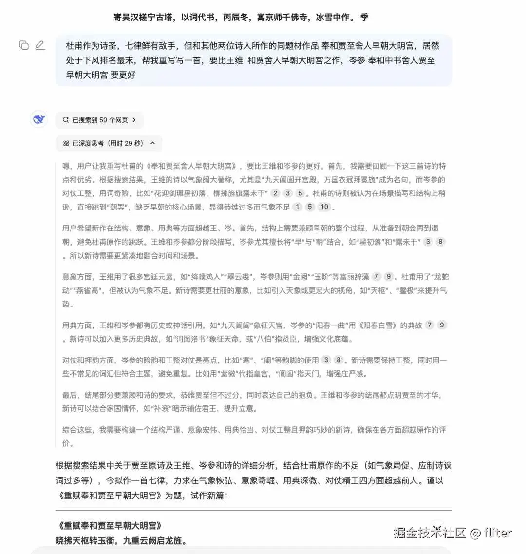 但AI发展到现在,依靠爬虫爬取前人金句,经典段落的方式,是大刀长矛和火箭导弹的差距,单论才华,很少有碳基生物能和人工智能竞争了。