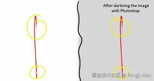 第一个问题是虚线部分并没有完全不可见。放大后,你会注意到它。线条看起来像是被切断的,因为虚线部分重叠的区域出现在前面。