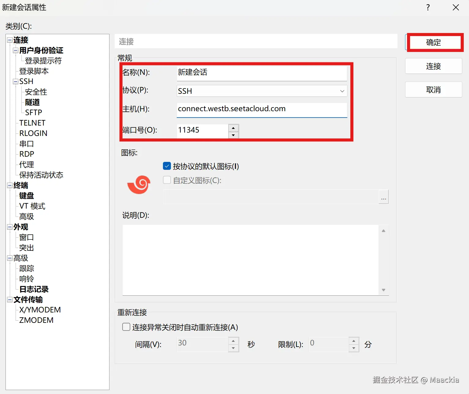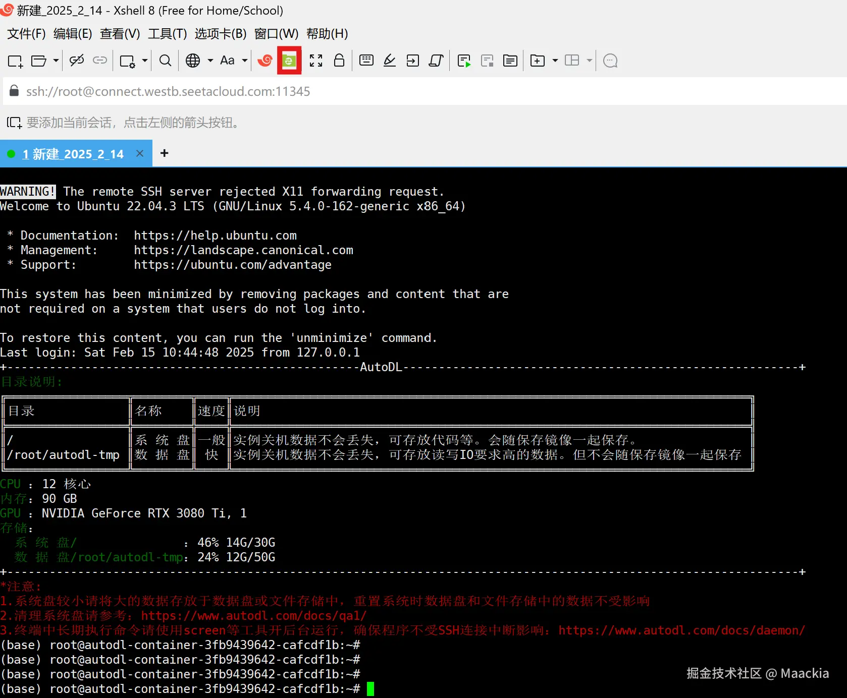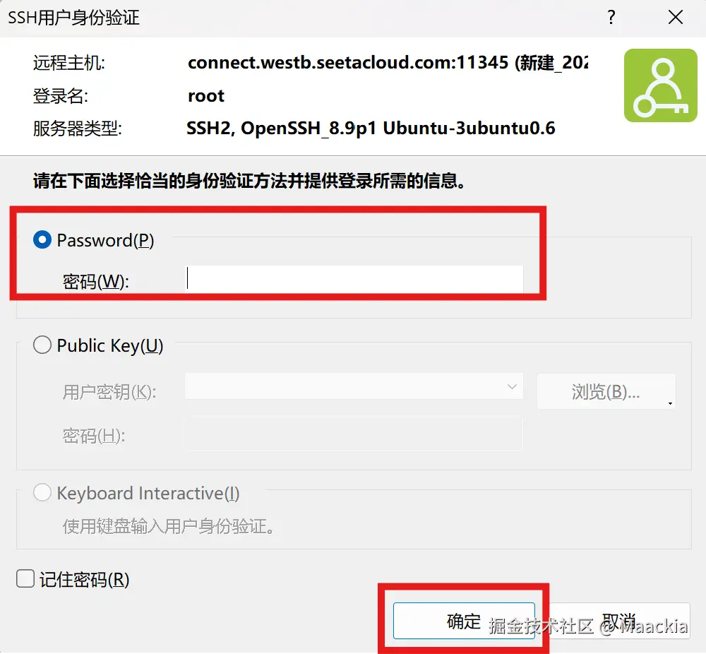 - 按照所购服务器的SSH信息进行登录