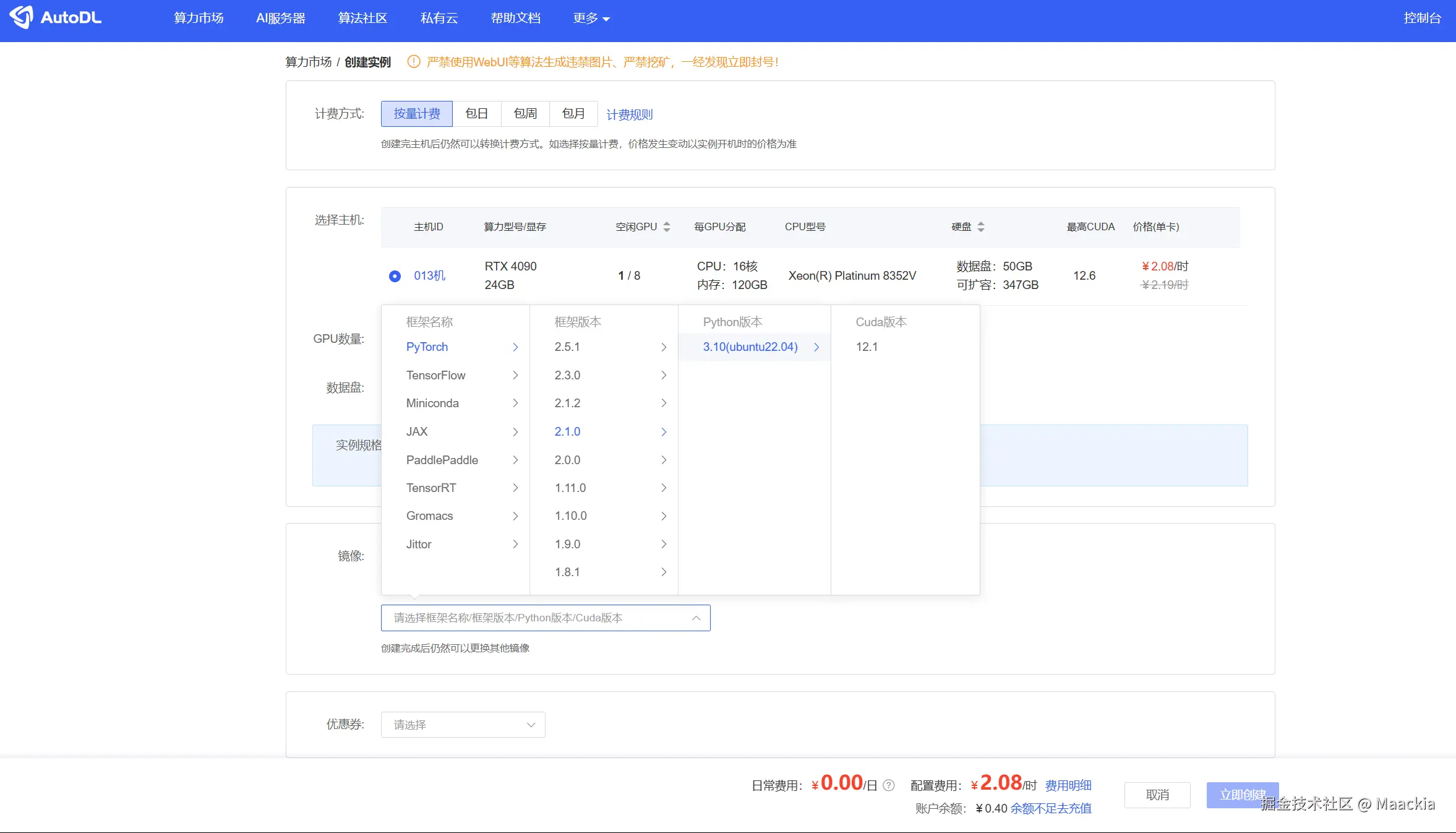 - 选择服务器进行购买,选择基础镜像配置需要的环境即可