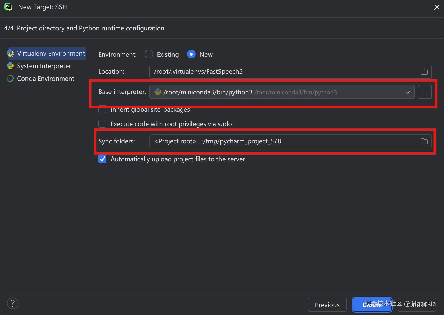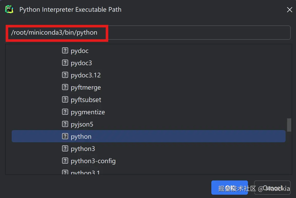 - Base interpreter:选择/root/miniconda3/bin/python