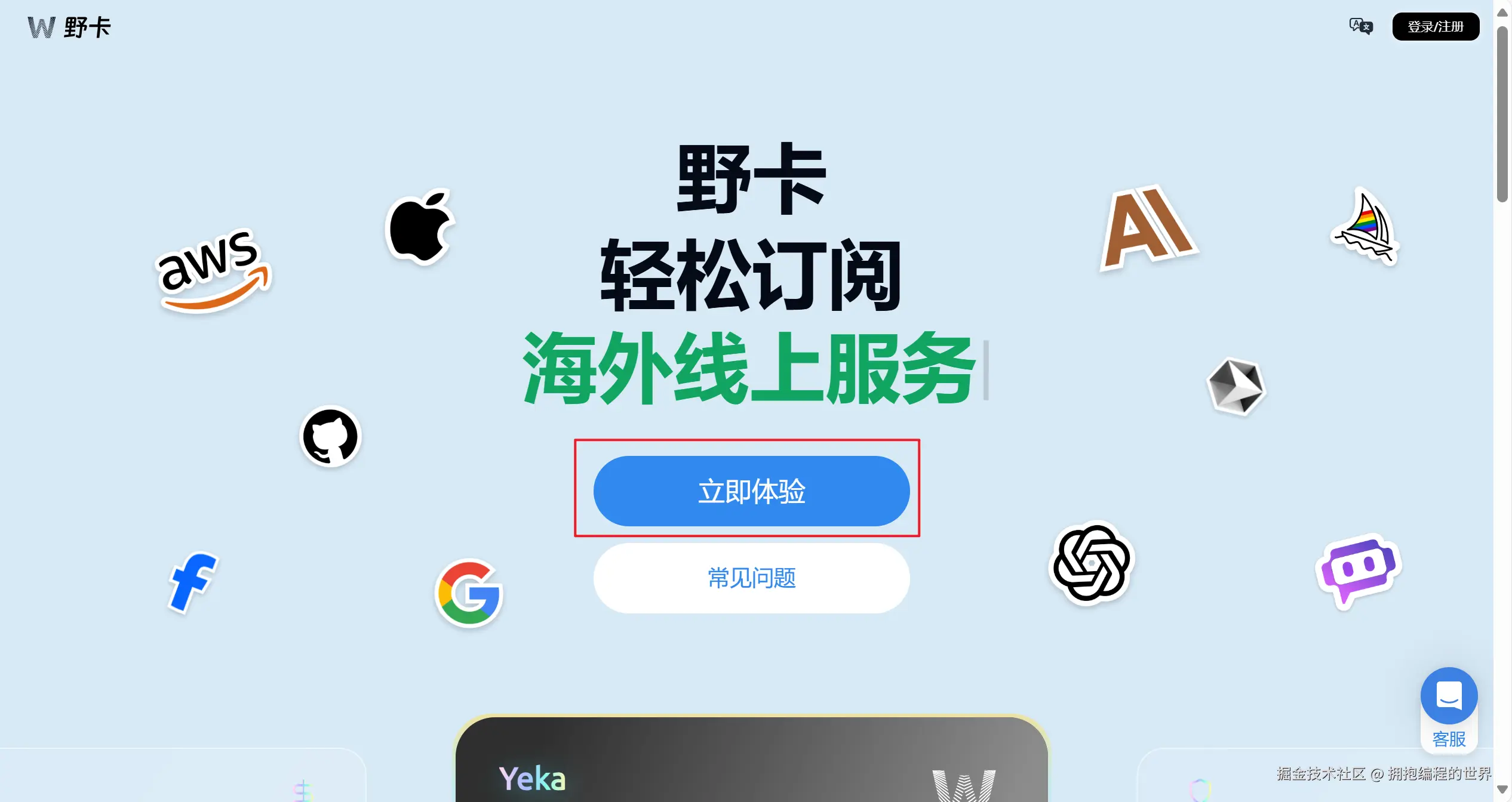 - 点击官网注册链接 👉 yeka.ai/i/GPT005 👈,打开官网后,点击立即体验