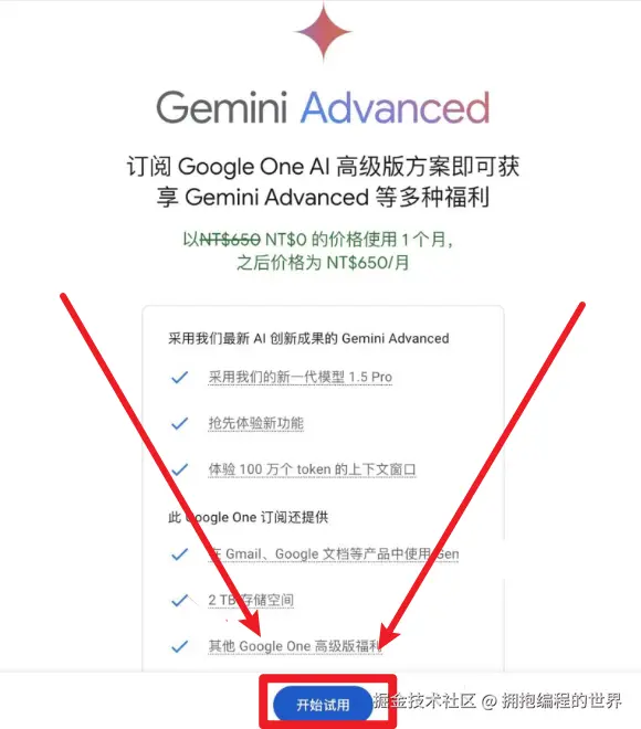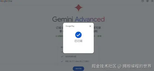保存卡片信息后,便可选择该卡号进行订阅,即刻开通并免费体验Gemini Advanced Pro服务,升级为Gemini Pro会员,尽享为期一个月的试用特权。