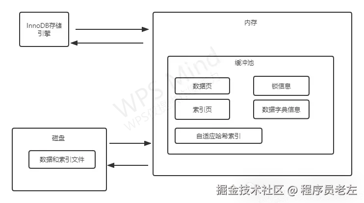 InnoDB存储引擎是基于磁盘存储表文件和索引的,并将数据按页的方式管理,由于访问磁盘的速度较慢,多次访问磁盘会造成数据库性能的下降,为此,InnoDB在内存中开辟一个缓冲池,将已经从磁盘读取的页放到缓冲池中,如果下次再需要读取相同的页时,直接从缓冲池中读取。 如下图: