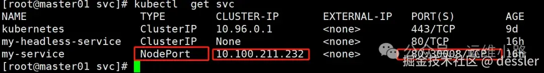 我们以下面的这个30008端口来进行讲解,在比较早期的版本这个30008端口还会监听在每个节点的kube-proxy进程上,当前我使用的版本已经不再监听NodePort端口。