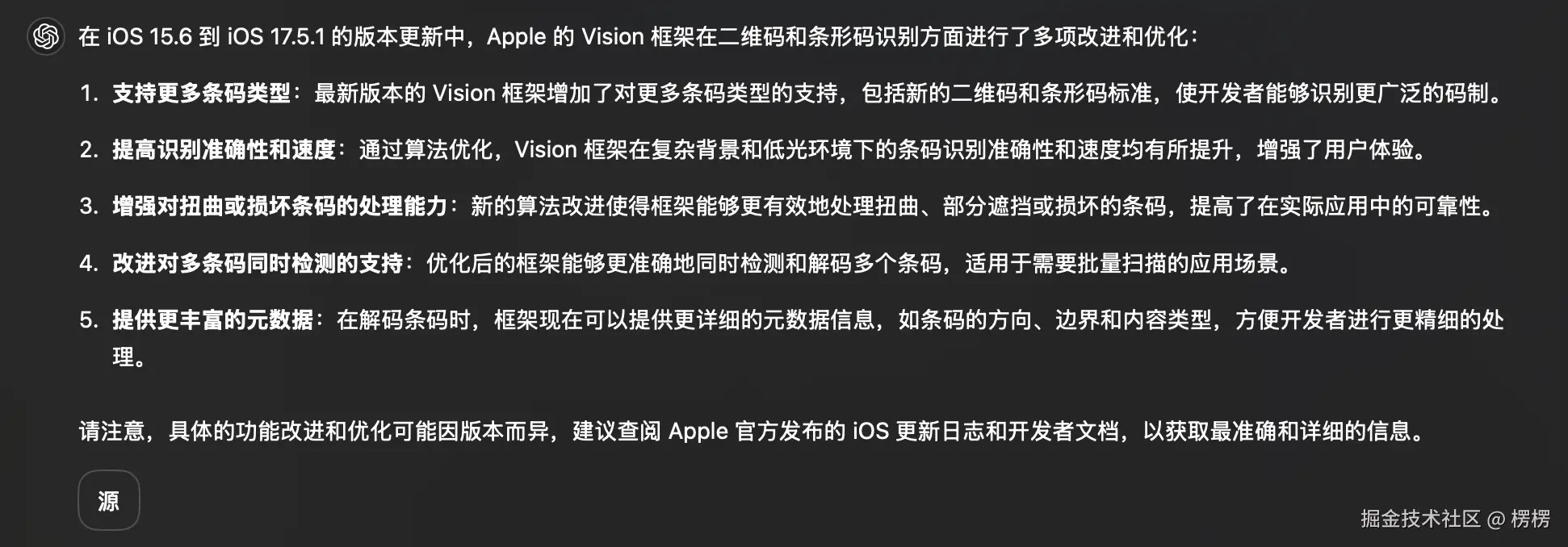 - 文本检测与识别:Vision可以在图像中检测文本区域,并与文本识别(通常需要和Core ML或苹果内置OCR能力结合)进行整合,实现从图像或拍摄画面中提取文字。