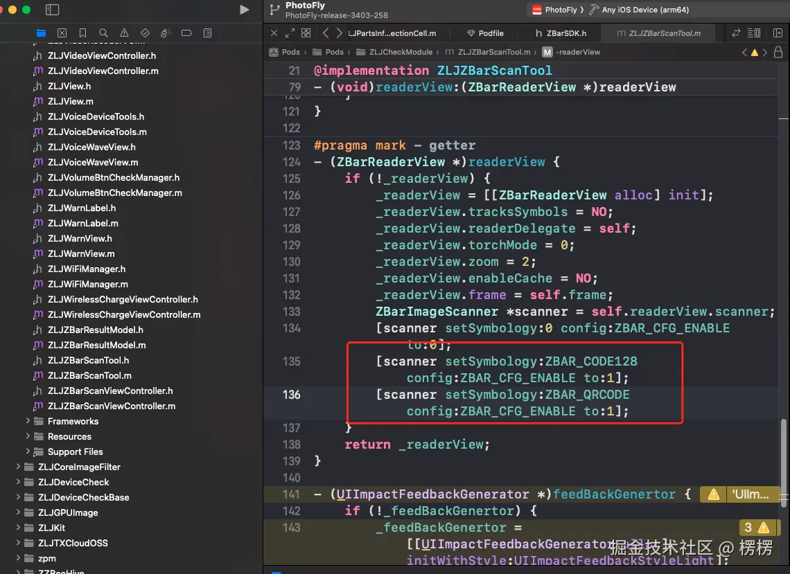 本身是一个objc库,依赖zbar和ZZViewController这两个objc库