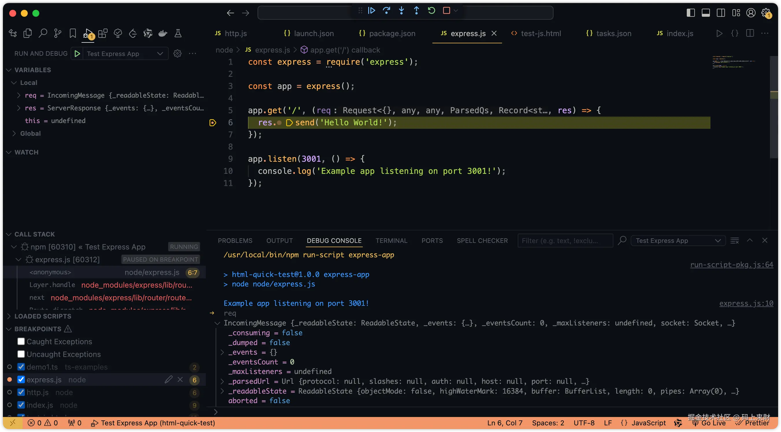 到这里基本上将vscode的调试功能讲完了,接下来我们来几个真实的调试案例
