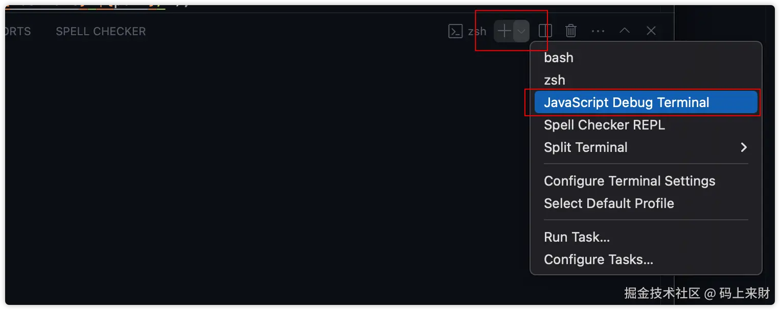 只需要打开Javascript Debug Terminal终端,然后像往常一样启动程序一样: