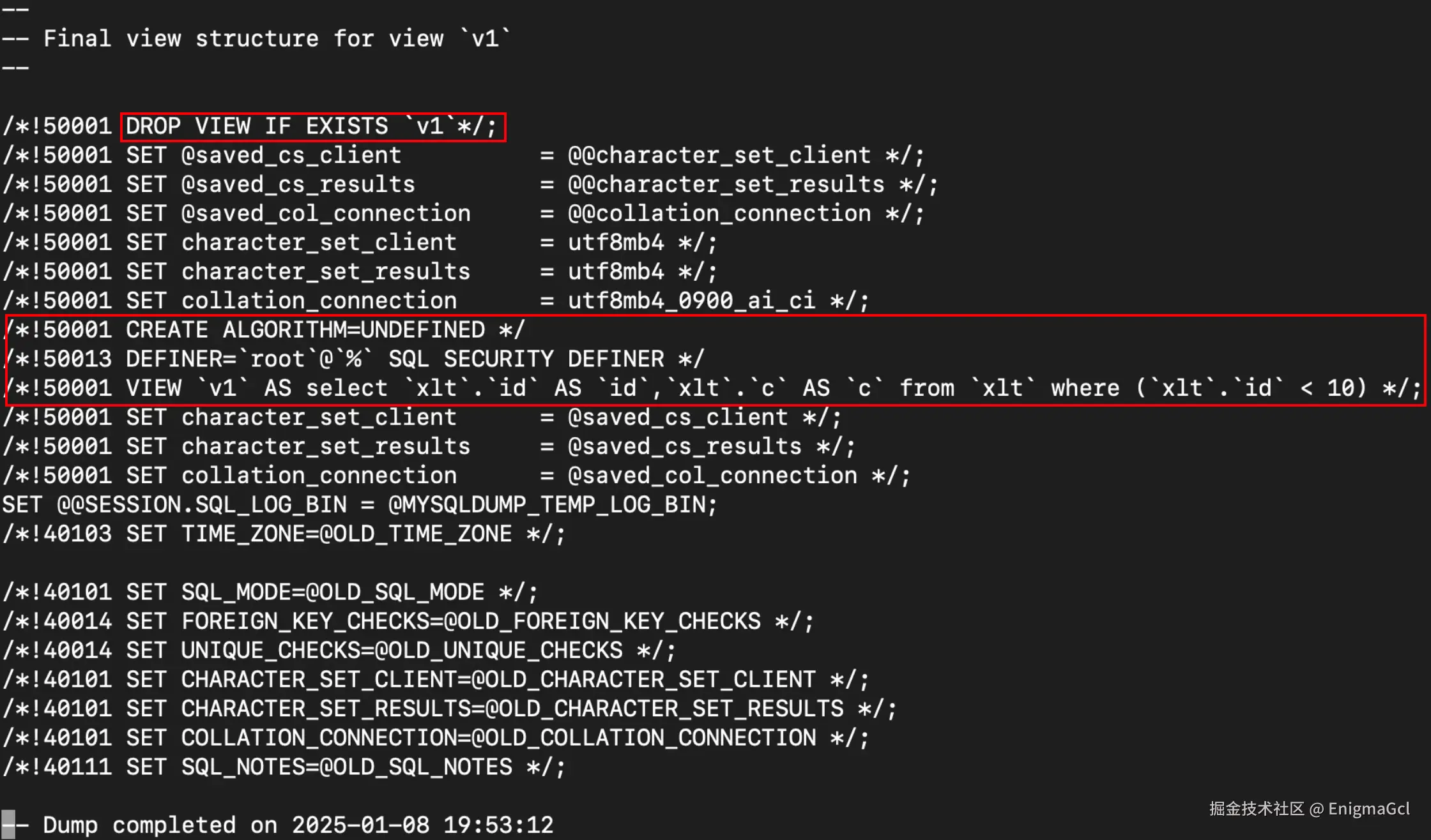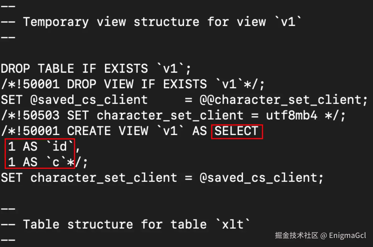 创建视图,如果视图依赖的表还未创建,怎么办?mysqldump 会先创建一个假的视图,如下: