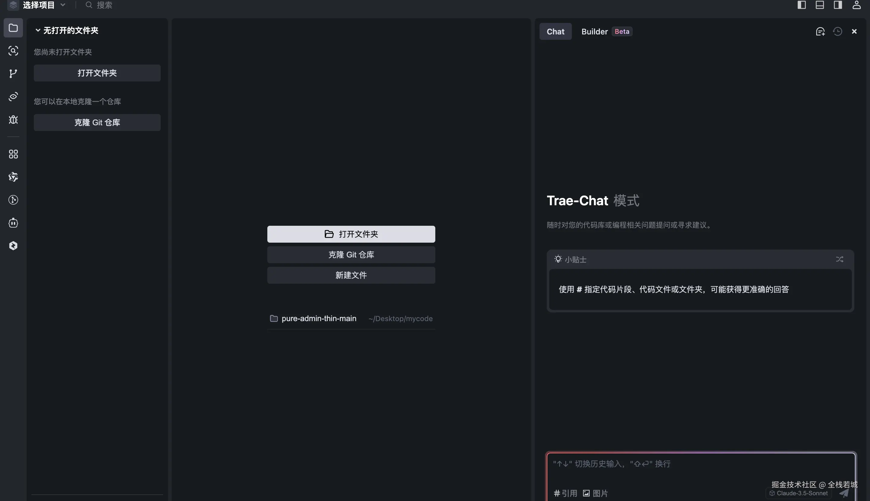 登录成功之后 Trae 界面如下图所示