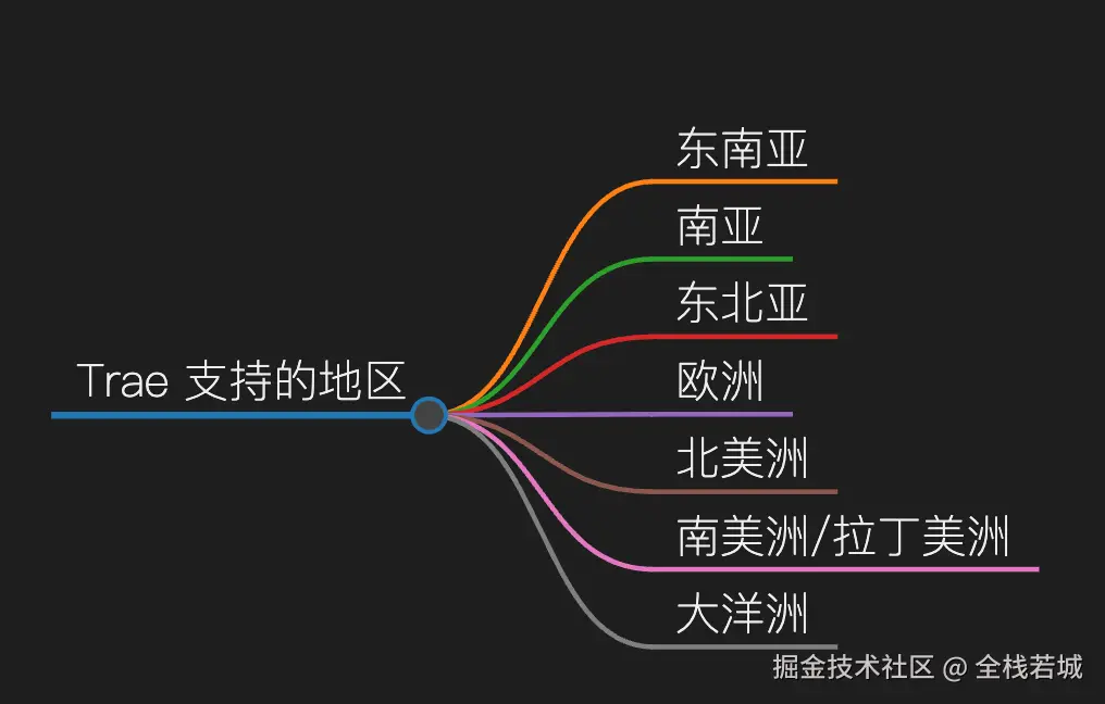 注意:Trae 支持的地区如下图所示, 因此在注册过程中请选择科学上网哦!