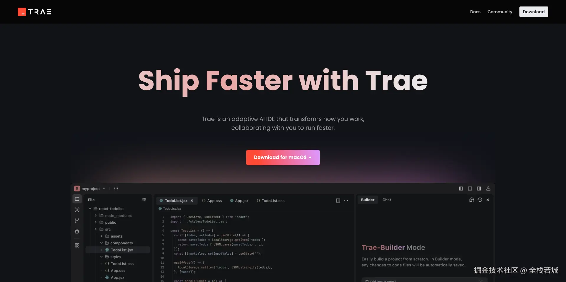 访问 Trae 链接: https://www.trae.ai/?utm_source=juejin&utm_medium=juejin_trae&utm_campaign=techcall 进行 IDE 的下载
