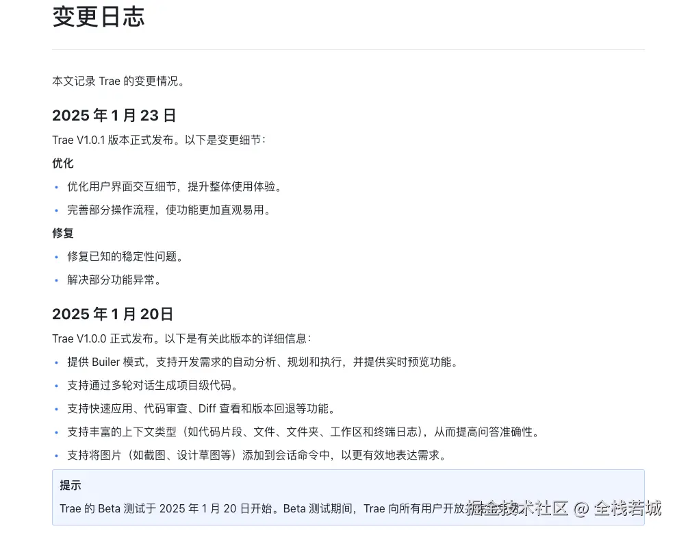- 学习成本:用户上手简单, 提供详细的帮助文档和教程,教程文档链接:docs.trae.ai/docs/builde…
