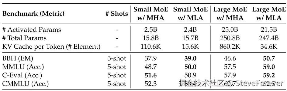有趣的是,MLA 的建模能力甚至超过了原始 MHA。