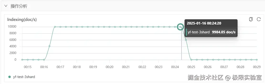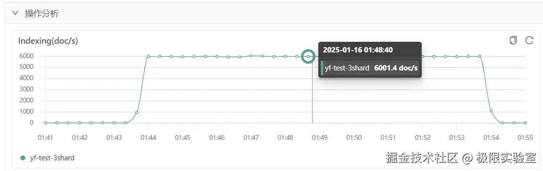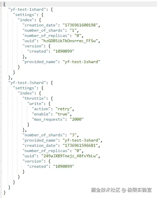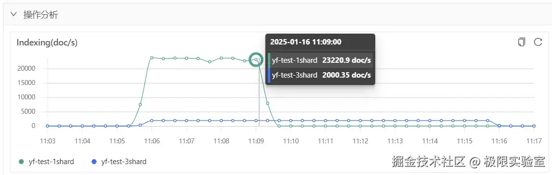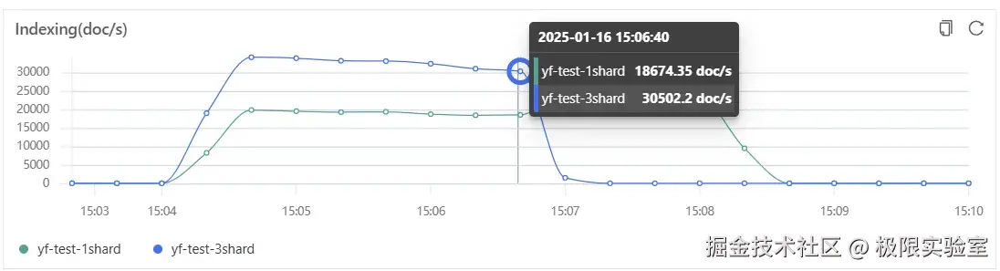 通过索引级限速功能,我们成功地限制了索引 yf-test-3shard 的写入速度,索引 yf-test-1shard 的写入并未受到影响。