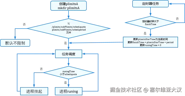 编程示例主要是创建分组plimitsA,通过读写子目录内容,完成进程与进程资源的分组,对Plimits组内进程资源限制。