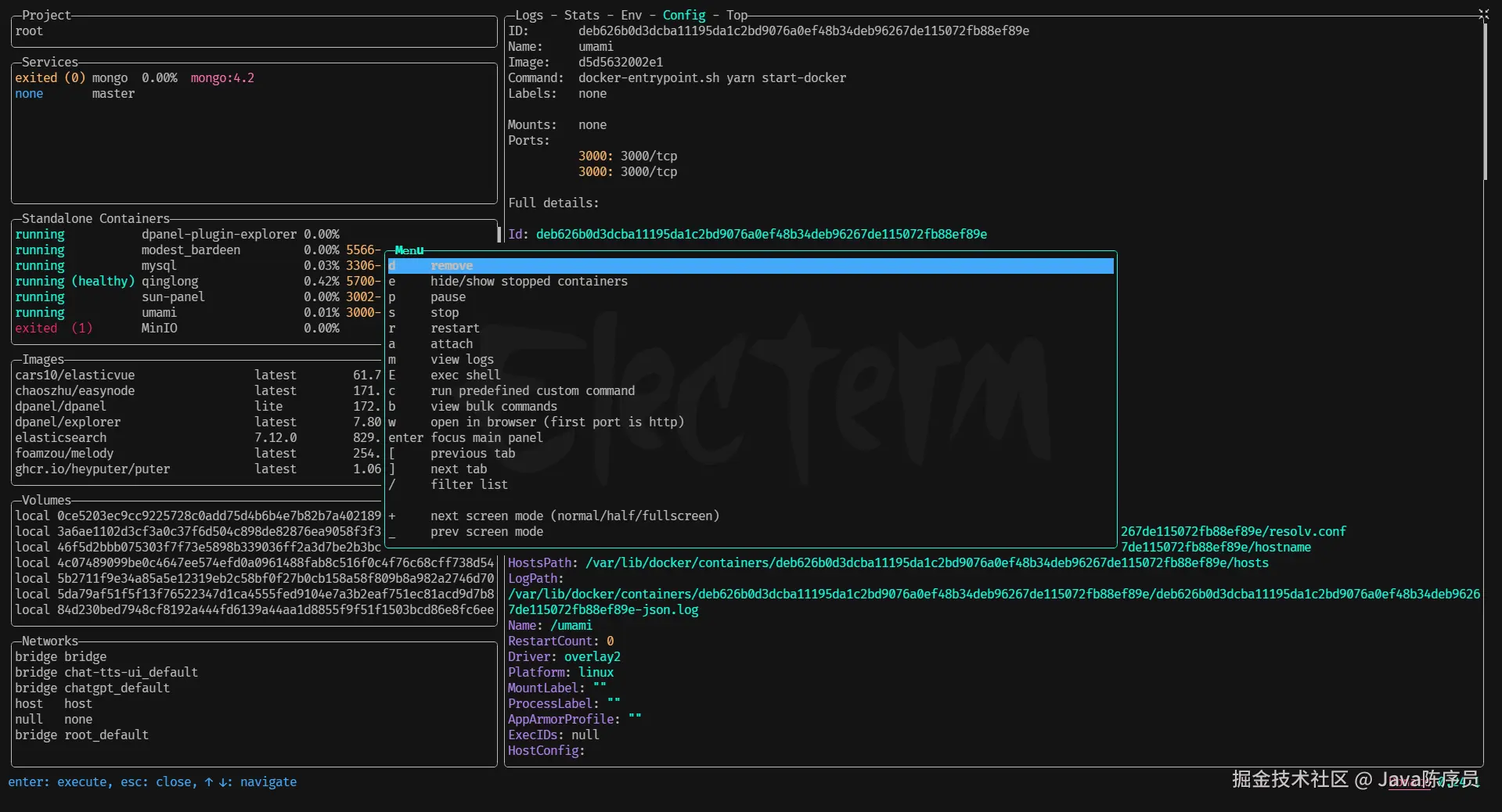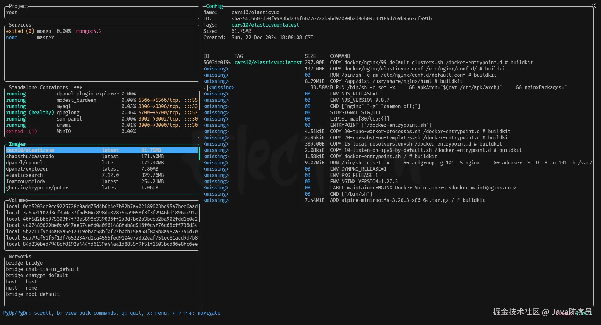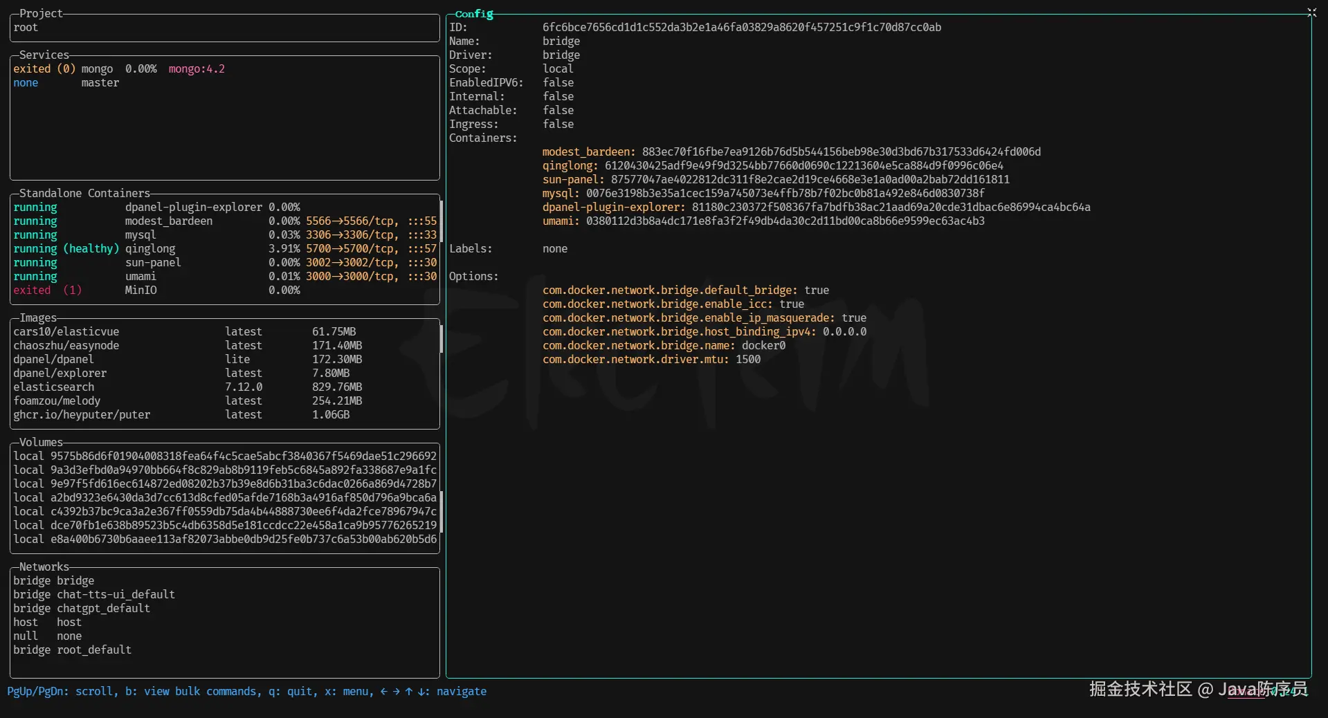 lazydocker —— 一个基于 Go 编写实现的终端 Docker 管理 UI 工具,为用户提供了一种更直观、便捷的方式来管理 Docker 容器、镜像、数据卷、网络等资源。