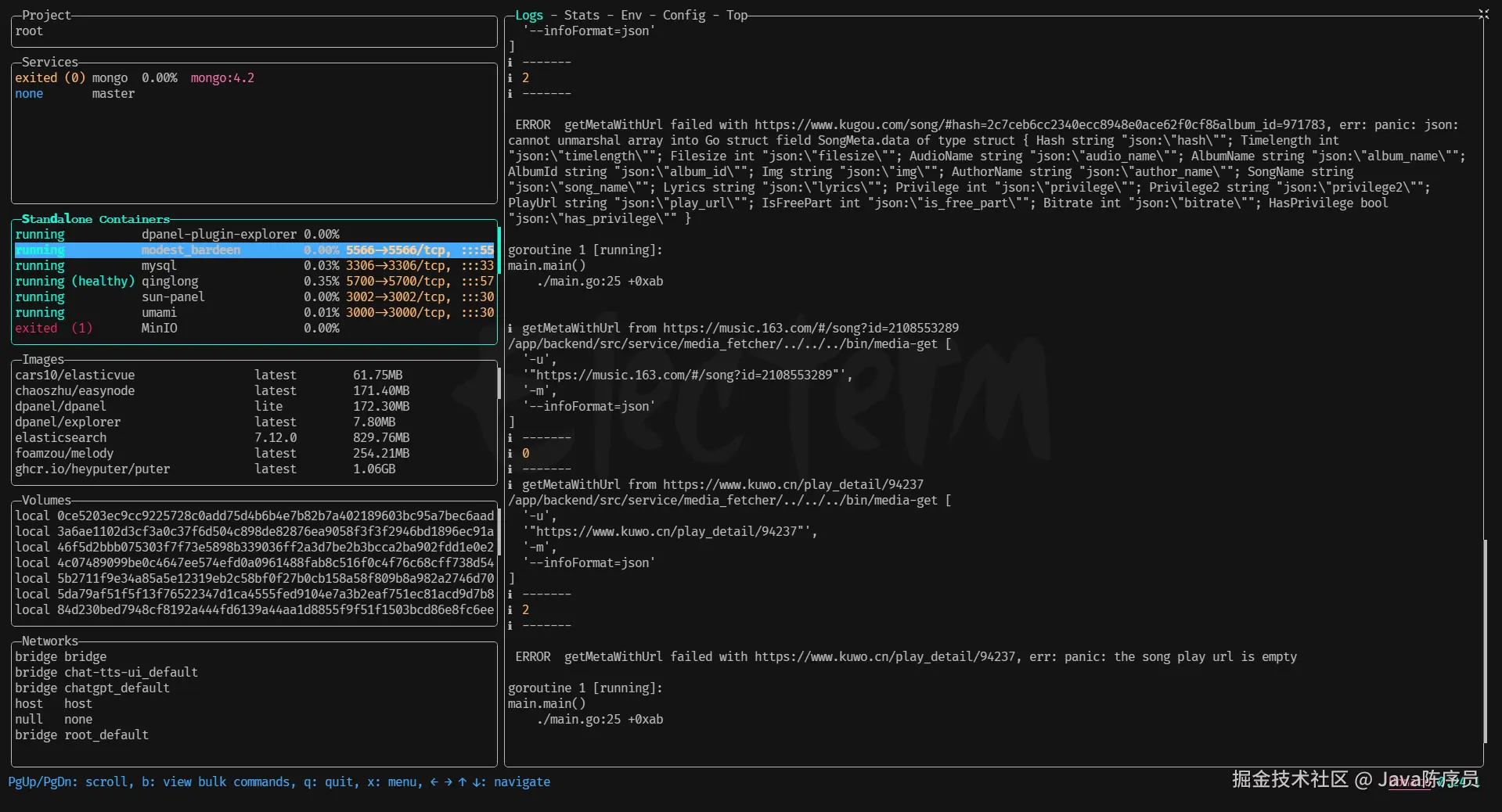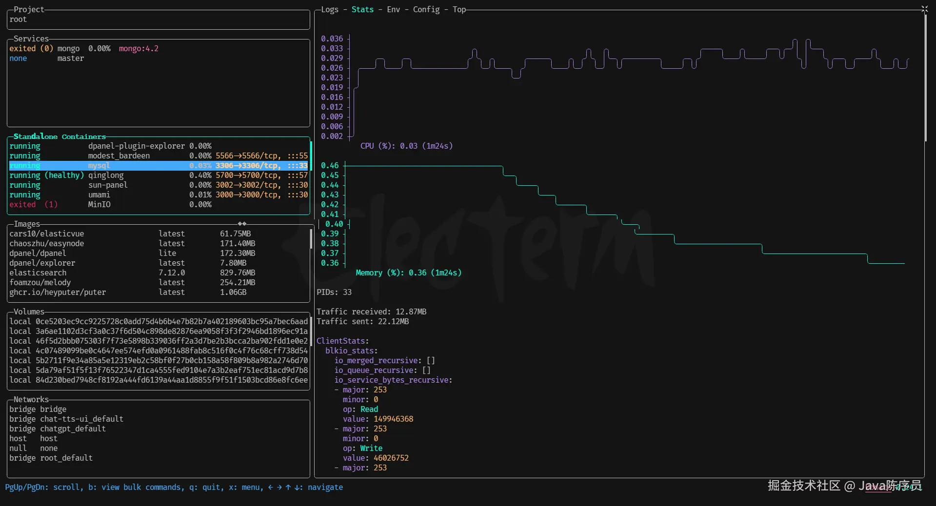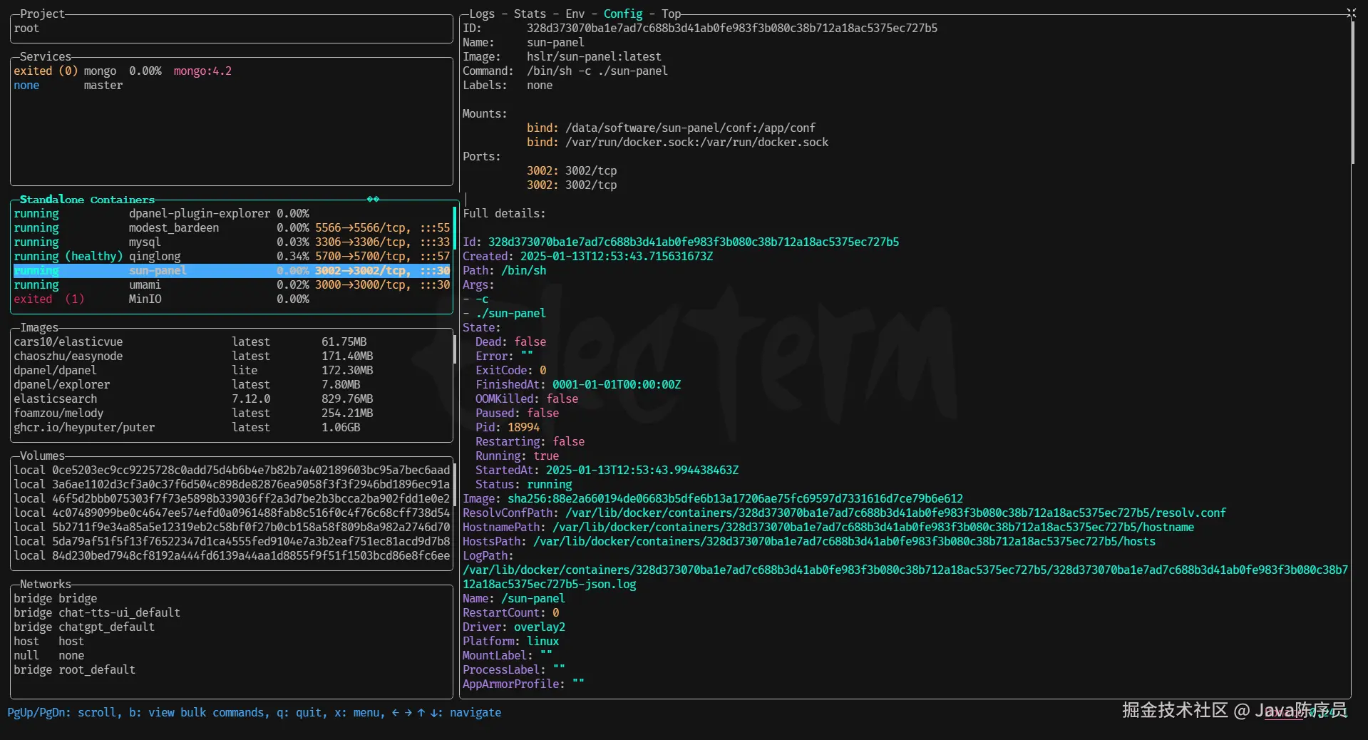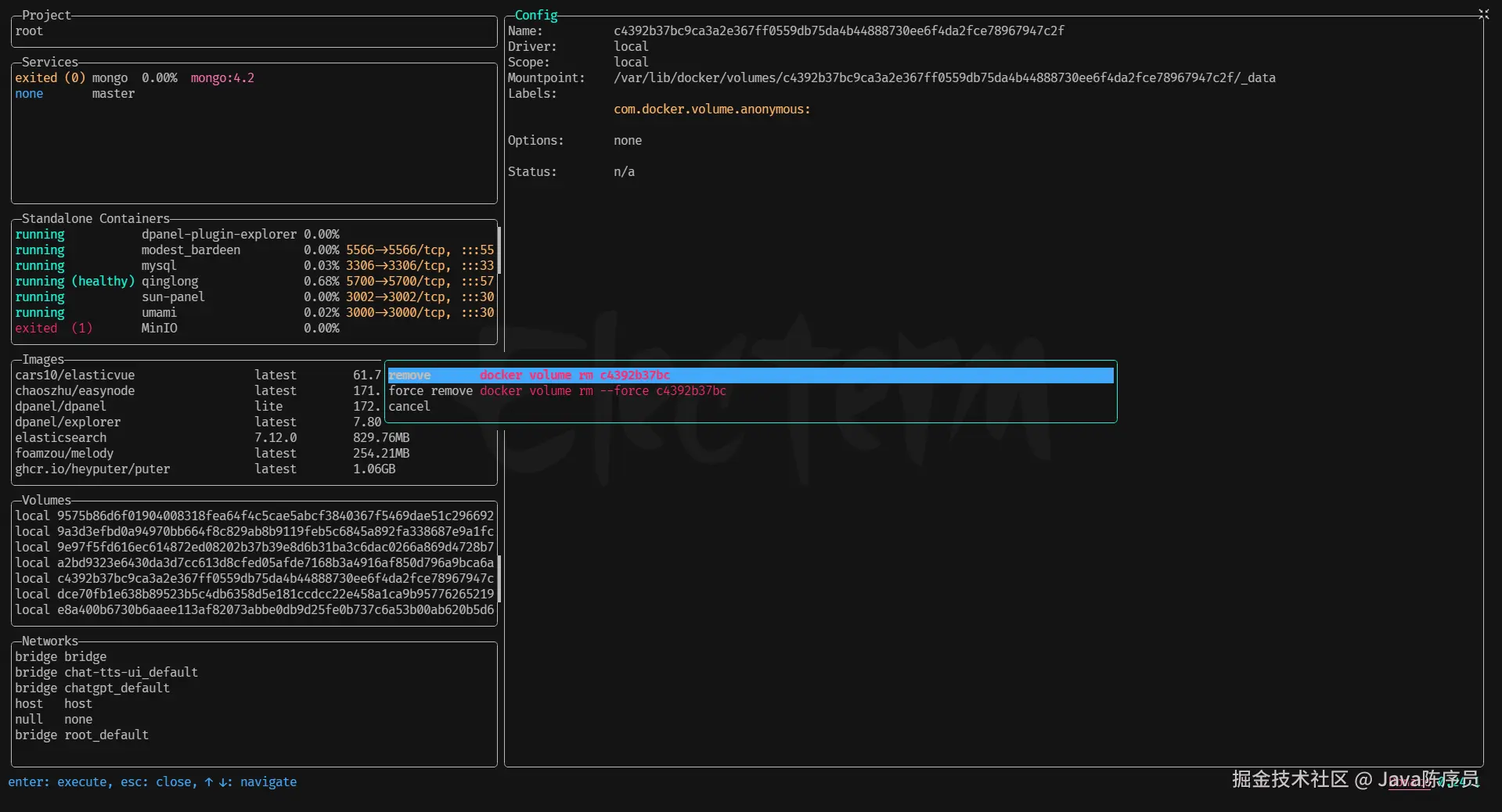 lazydocker —— 一个基于 Go 编写实现的终端 Docker 管理 UI 工具,为用户提供了一种更直观、便捷的方式来管理 Docker 容器、镜像、数据卷、网络等资源。